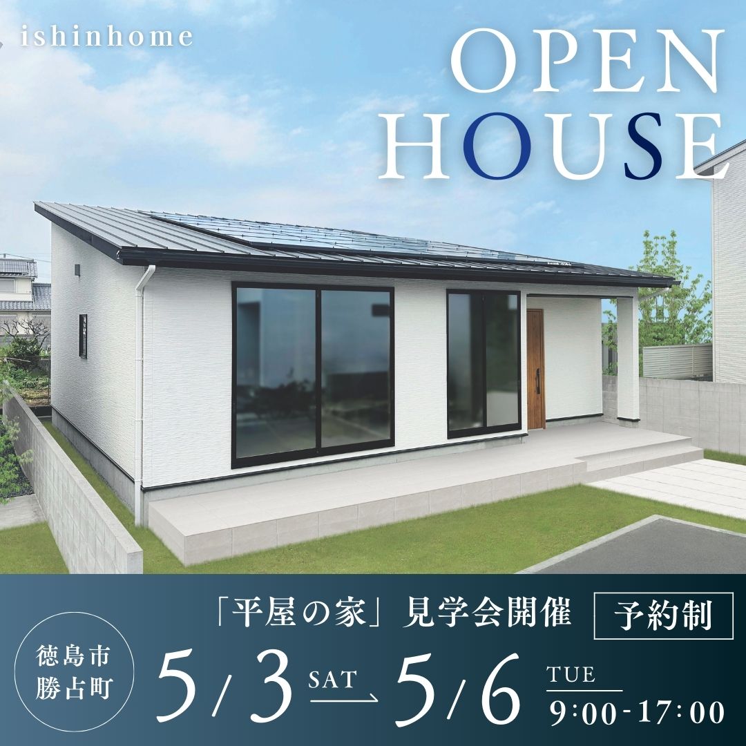 5/3.4.5.6 「平屋の家」完成見学会開催 in 徳島市勝占町