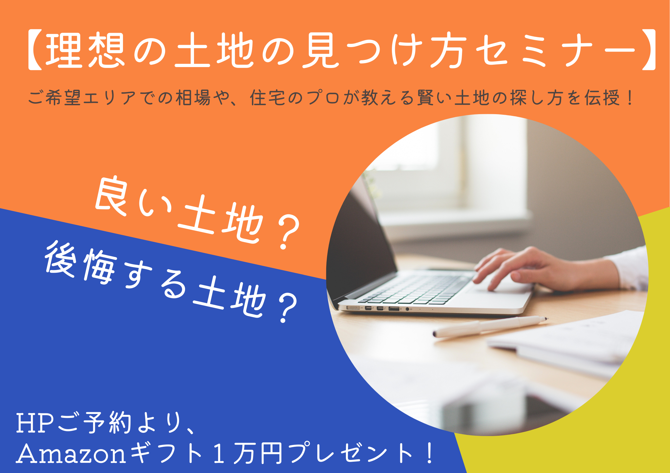 「いい土地があれば建てたい」とお考えの方は、まずこのセミナーで“正しい土地選びの知識”を手に入れましょう!
