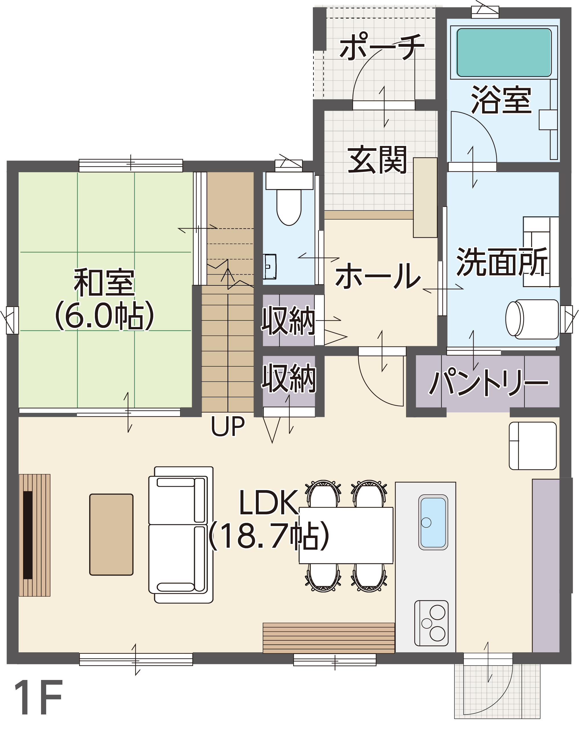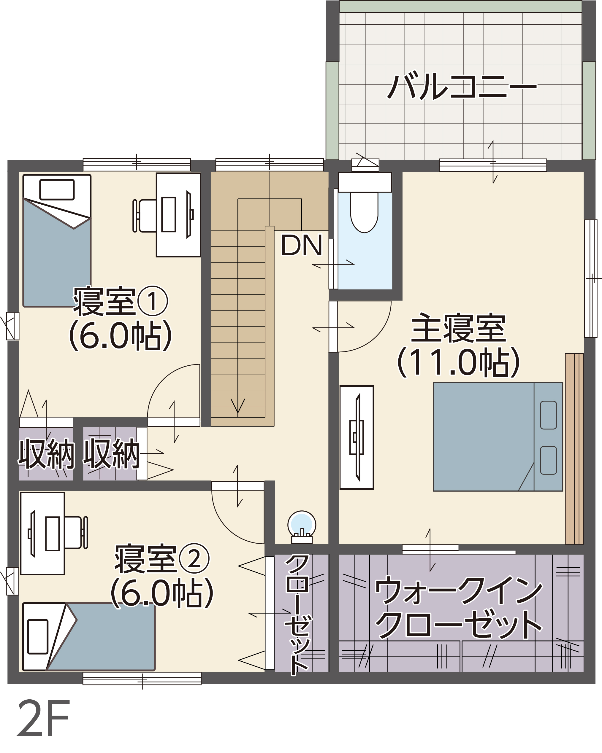 赤ちゃんと夫婦だけなので、今は1階の和室に川の字で寝ています。1階に和室があると便利です。