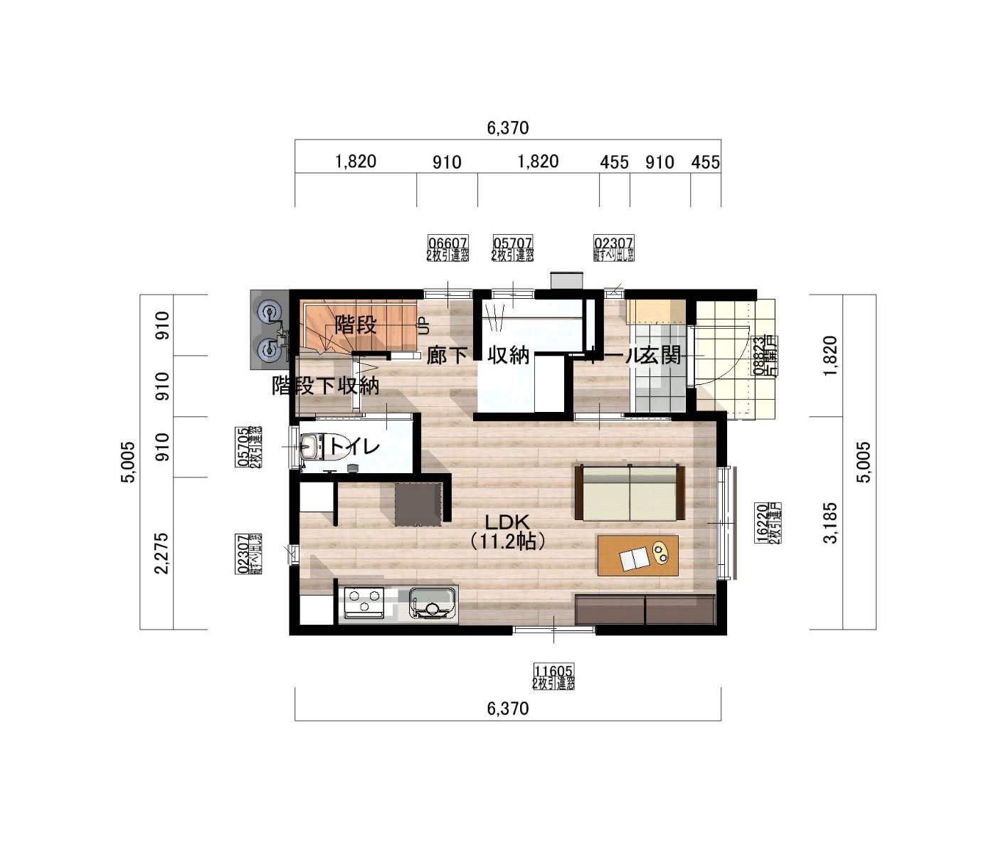 延床面積: 63.75㎡(19.28坪)