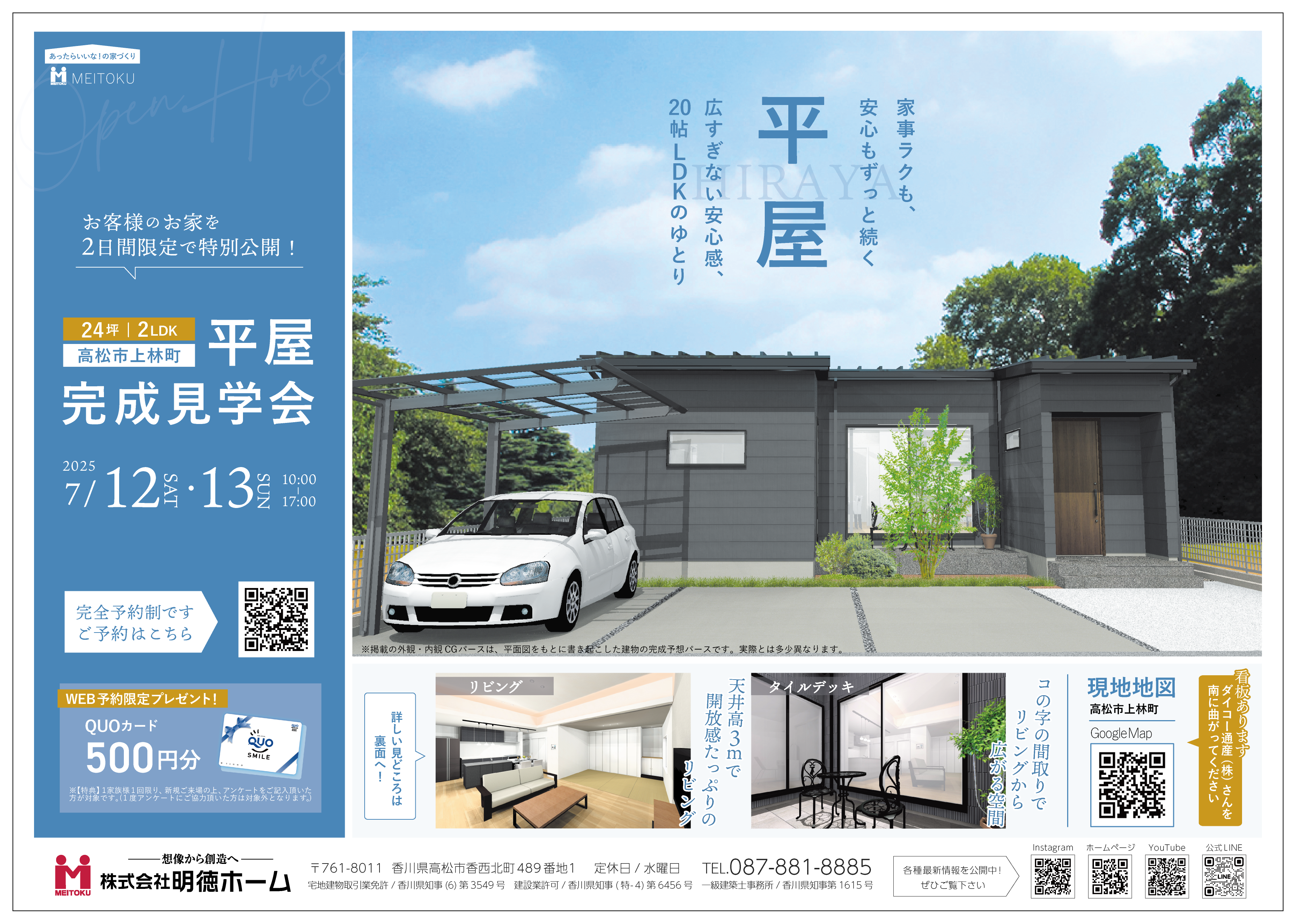 【平屋完成見学会】7/12㈯・7/13㈰オーナー様邸in高松市上林町