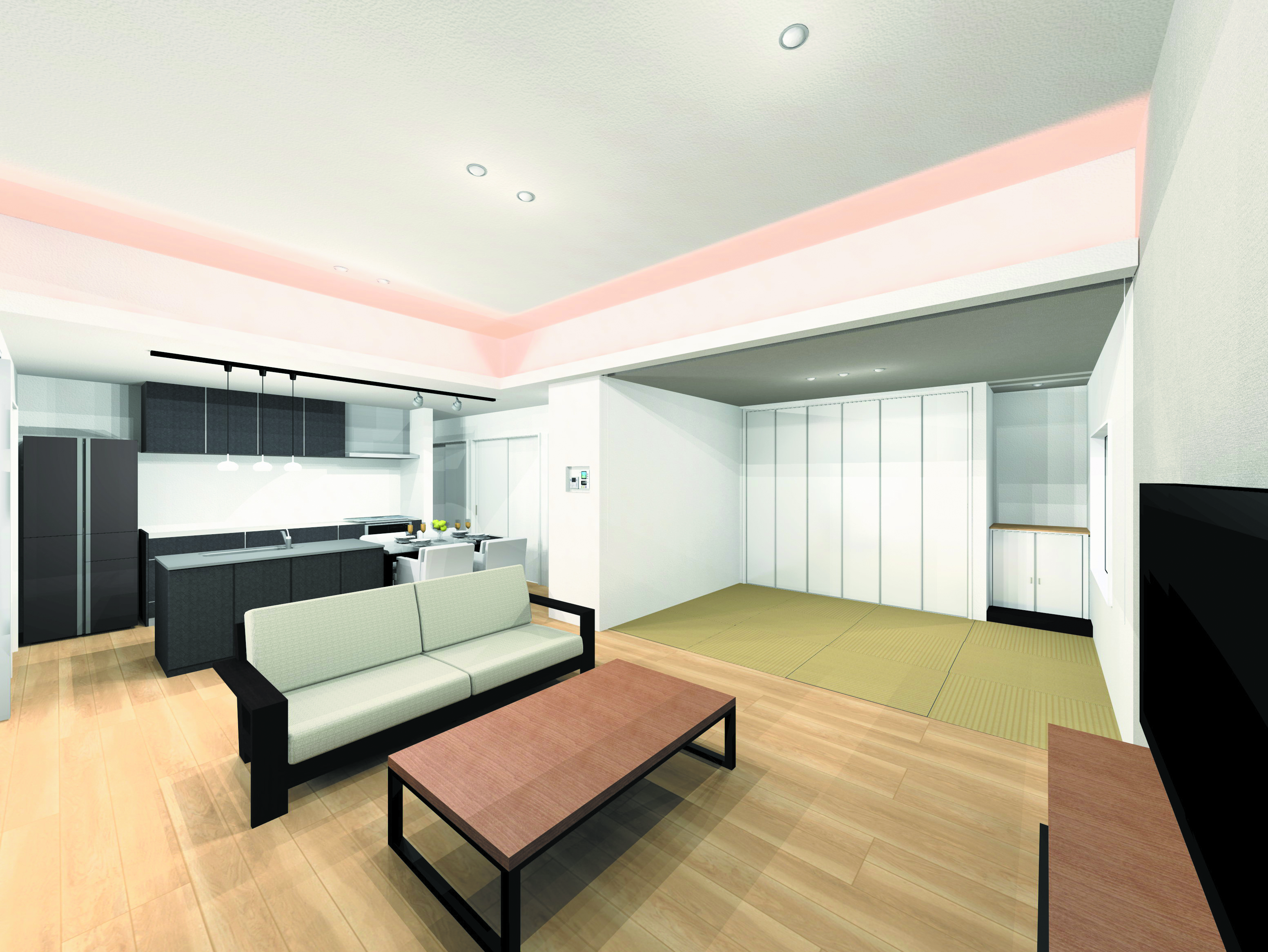 理由①:間接照明が心地良い20帖のLDK