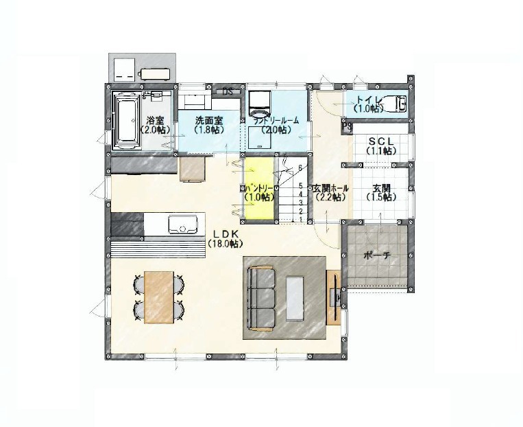 ランドリールームが完備されているため、雨の日でも室内干しが楽々。