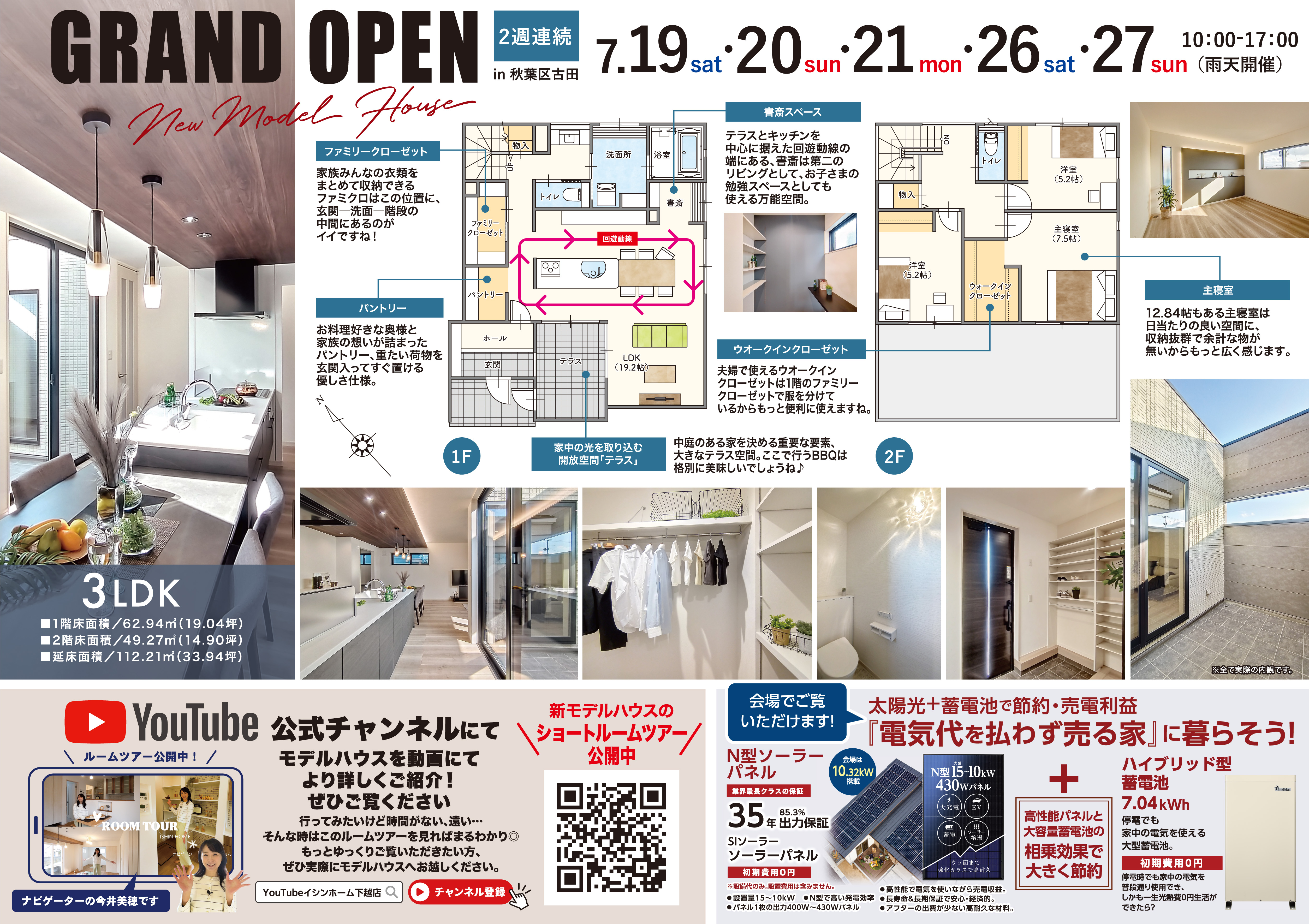 7/19㈯~21㈪🎌・26㈯・27㈰ NewモデルハウスGRAND-OPEN見学会🏠