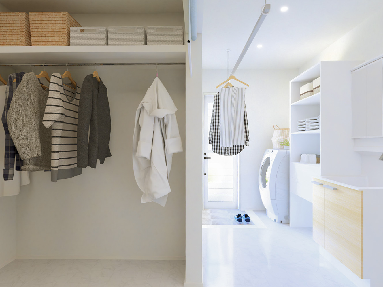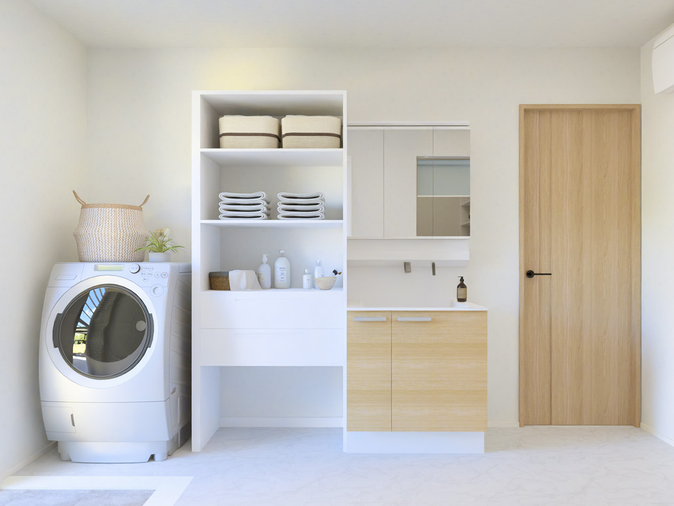「洗う・干す・しまう」が洗面所の一箇所で完結する家事1/2動線は、忙しい共働き世代の味方です。