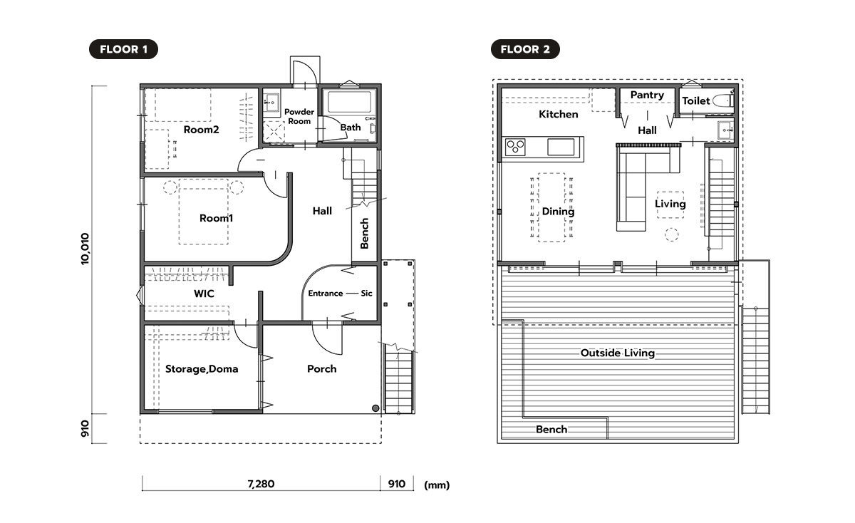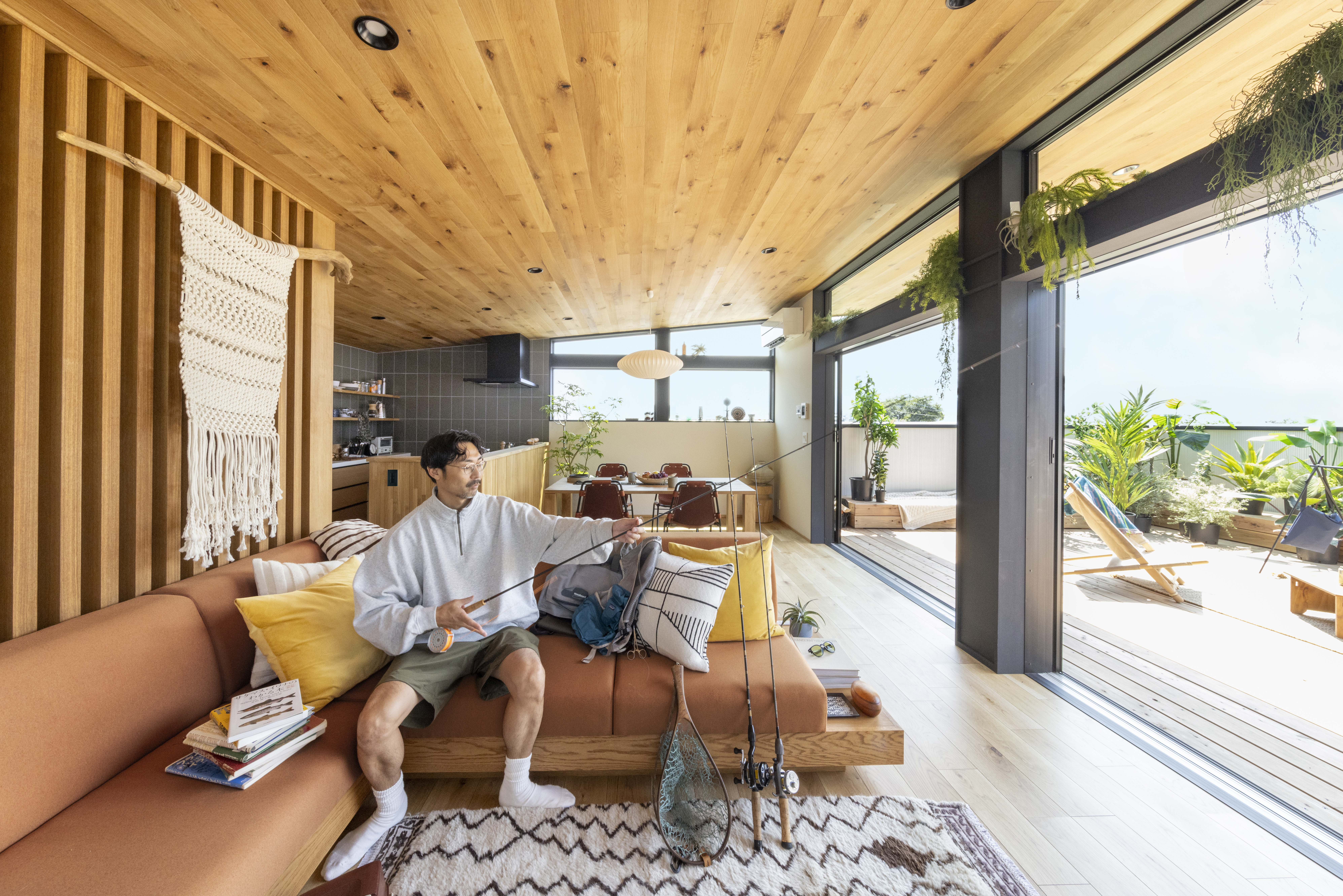 大開口から眺めるアウトサイドリビングが、屋内の開放感まで高める。