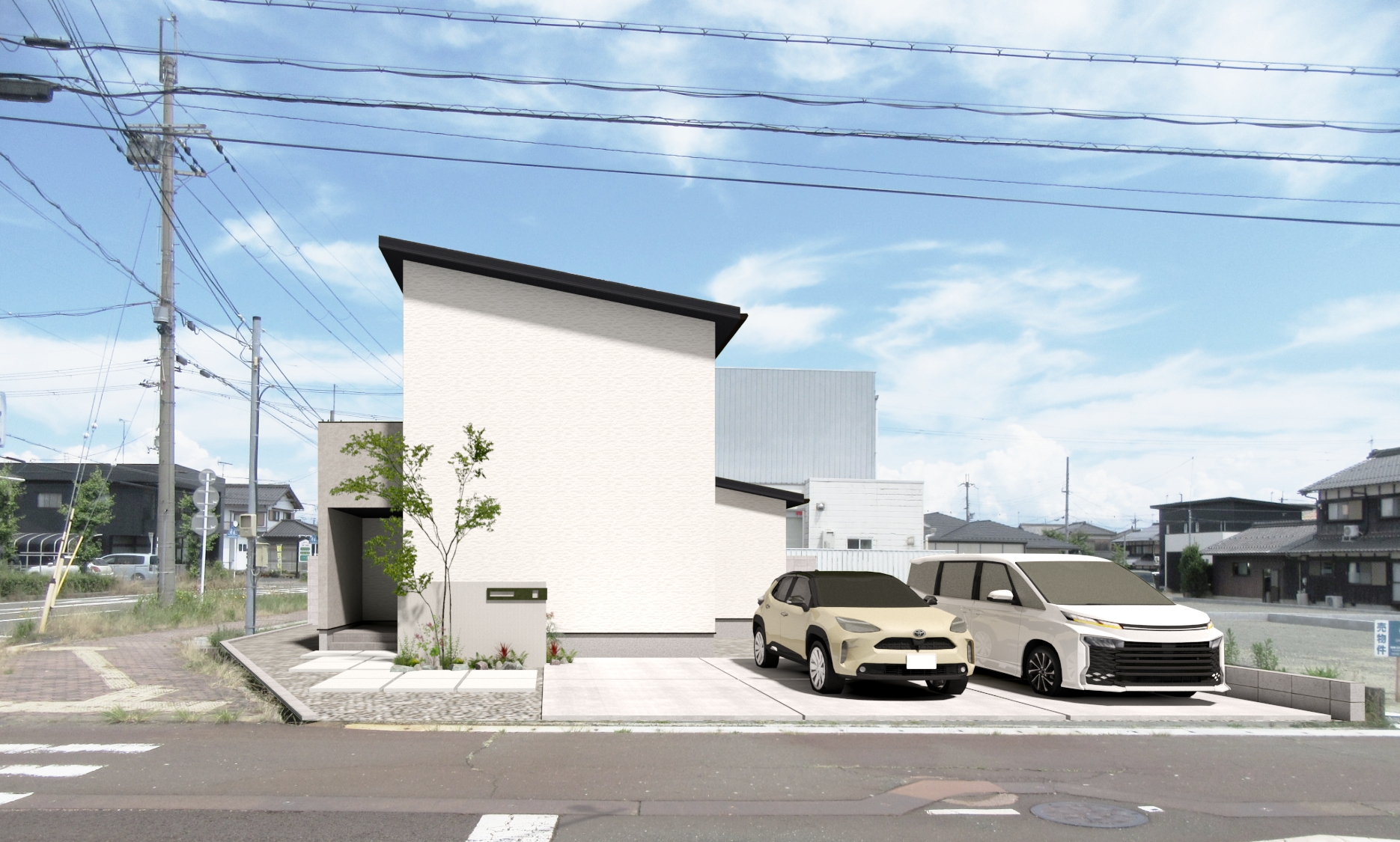 玄関は交差点からのプライバシーが守られるように配置にしました。