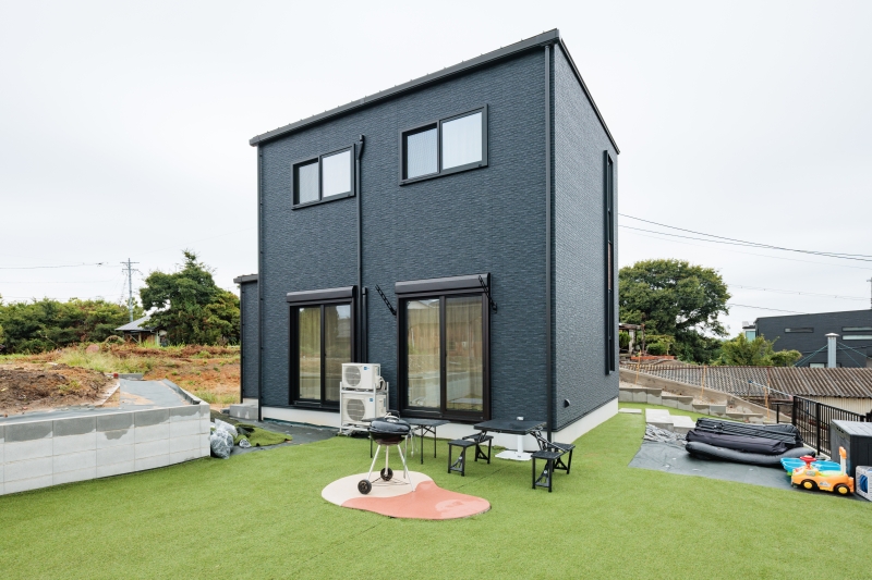 黒を基調とした外観と、家族時間を楽しめる工夫が詰まった住まいです。