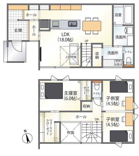 新舞子マリンパークや新舞子海水浴場が徒歩圏内にあり、散歩やピクニック、サーフィン、SUPなど海辺のアクティビティを気軽に楽しめる環境です。日常の中に美しい海の景色を取り込みながら、自然と調和した暮らしが叶います。さらに通勤や通学にも便利で、スーパーや病院など生活に欠かせない施設も徒歩圏内に揃っているため、子育て世帯からシニア世帯まで安心して快適に暮らせる立地です。住まいは2LDK+ウォークインクローゼット+吹抜けのプラン。光と風を活かすパッシブ設計を採用し、自然の力で冷暖房費を抑えながら一年中快適な住環境を実現します。高気密高断熱仕様により、冬のヒートショックや夏場の熱中症リスクを軽減し、健康的な暮らしを支えます。機械に頼りすぎず自然を味方につけたパッシブ設計は、長期的に家計にも地球環境にも優しい選択です。また、家事動線への工夫も大きな魅力です。洗濯物を「洗う・干す・しまう」がワンフロアで完結できる動線を確保。洗面所から直接物干しスペースに出られ、近くに収納を配置することで日々の家事を効率化。忙しい日常にゆとりをもたらします。リビングは18帖の広さに吹抜けを設け、開放感と明るさを演出。南向きの大きな窓から差し込む自然光が、家族の時間をより豊かに彩ります。主寝室には広々としたウォークインクローゼットを完備し、洋服や荷物をすっきり収納可能。居室を広々と使える快適さが魅力です。さらに子ども部屋は将来2部屋に分けられる設計で、ライフスタイルの変化に柔軟に対応できます。新舞子の海と駅近の利便性を両立し、快適な住まいと健康的な暮らしを提供します。自然と都市の調和を享受しながら、長く安心して暮らせる住まいをぜひご体感ください。