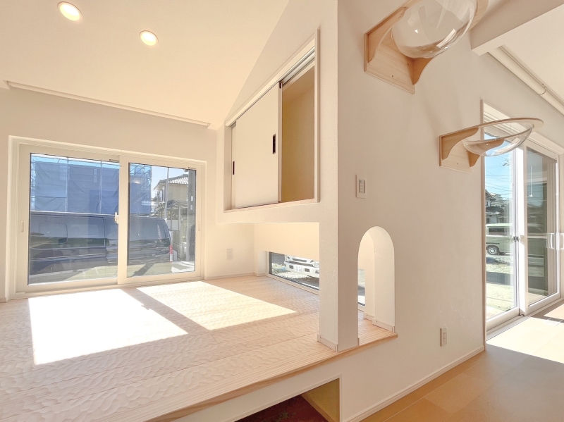 動画サイトを活用して自身でも家づくりの知識を深めていく中、巡った会社は数十社にも達したが、最終的に重視したのは性能でした。長く住み継げる家にするには「断熱性・気密性」や「サッシと窓の性能」が大切だと学んでいたことから、性能面に安心できると感じた建築工房sakuraをパートナーに選びました。高断熱なトリプルガラスと太陽光発電システムが標準のプランがあると聞き、『オプションになるような設備なのにすごい』って驚きました。話をしてくれた店長の藤岡さんがとても誠実で正直な受け答えをしてくれる人で、この人だったら信頼できると思えたのも大きかったですね。社長自ら現場に出ていて、スタッフとの距離が近い会社さんというのもいいなと感じました。リビングからすべての部屋に行き来できるリビングアクセスを叶えた平屋は、愛猫との暮らしを楽しくするアイデアもいっぱいでした。猫ちゃんの抜け穴・キャットドアがあちこちにあるほか、リビングのあらわしの柱を利用したキャットタワーは、私たちの雰囲気に合わせて大工さんが手作りしたオリジナル品です。私たちも現場に立ち会いながら、踏板の位置などを一緒に決めていきました。要望をよりよく形にしようと営業さんも大工さんも全員が親身になってくれて、建築工房sakuraさんにお願いして本当によかったです。
