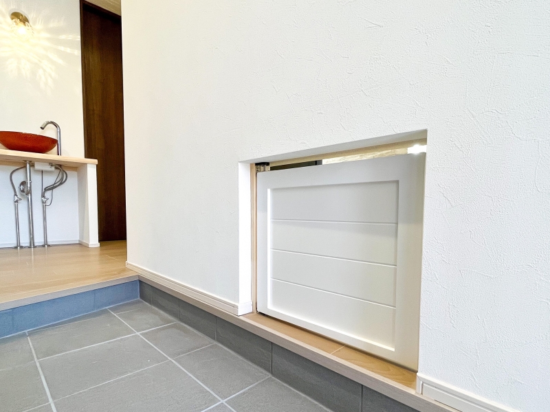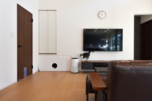 猫ちゃん専用のドアを各所に設置し、猫ちゃんが行き来します。
