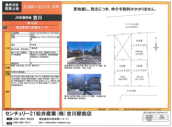 土地売買契約締結後3ヶ月以内に松井産業株式会社と建築請負契約を結んでいただくことを条件として販売いたします。