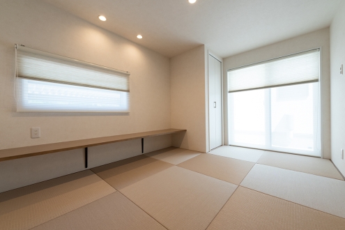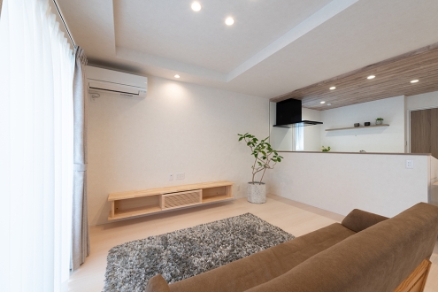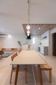 開放感のある折り上げ天井のリビングと和の趣が嬉しい小上がり和室。