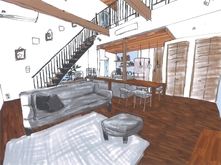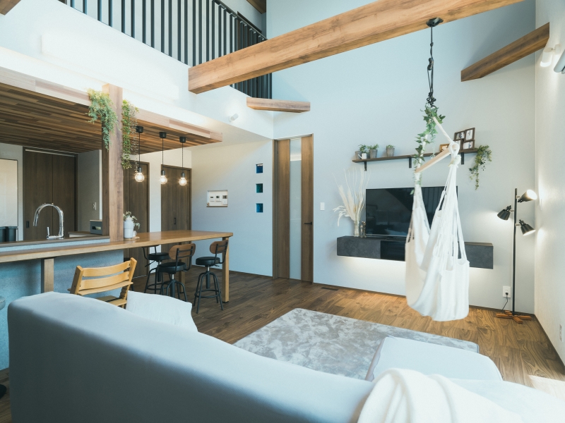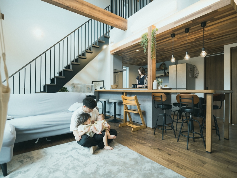 奥様が描かれていた理想のマイホームをそのまま形にした、大きな吹抜けで開放感のあるLDKが魅力的な家