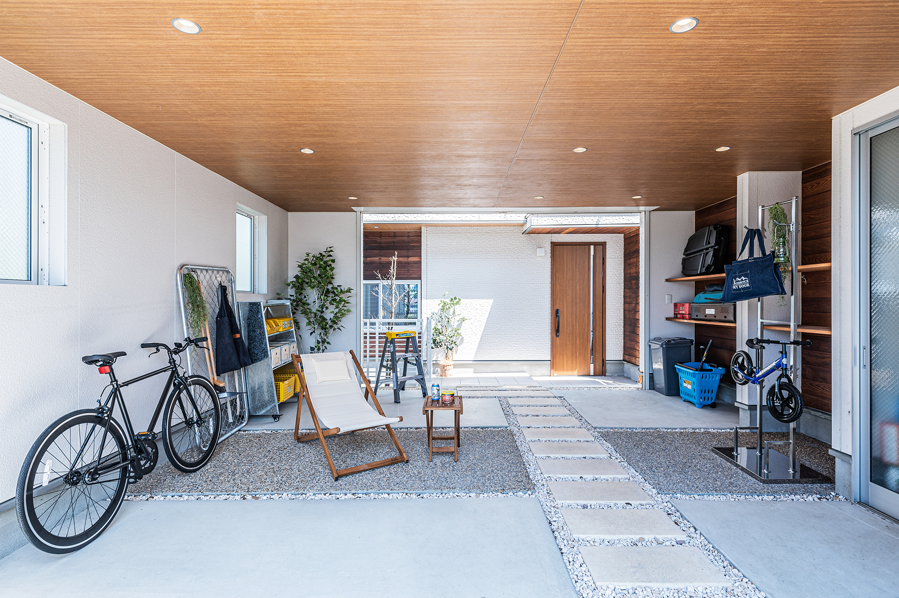 収納付きガレージに遊び心も収納
