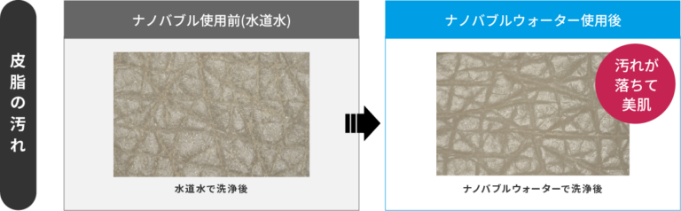 ナノバブルウォーターの微細な泡は、皮膚表面についた汚れや、毛穴に詰まった皮脂をかき出し、肌を清潔な状態に保ってくれます。また、ナノバブルを含む水は、通常の水より肌あたりが柔らかいため、シャワーを浴びる時の肌へのダメージを軽減できるのも魅力です。