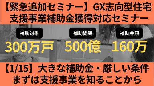 2024年11月22日に閣議決定された「GX志向型住宅」支援事業。既に受付が始まっており、大手ハウスメーカーや、全国で勢いがあるAI工務店、ヤマト住建などもすでに対応済みです。半面、中小工務店では、残念ながらこの支援事業を自体知らないことも多く、急ぎ対応が求められます。
