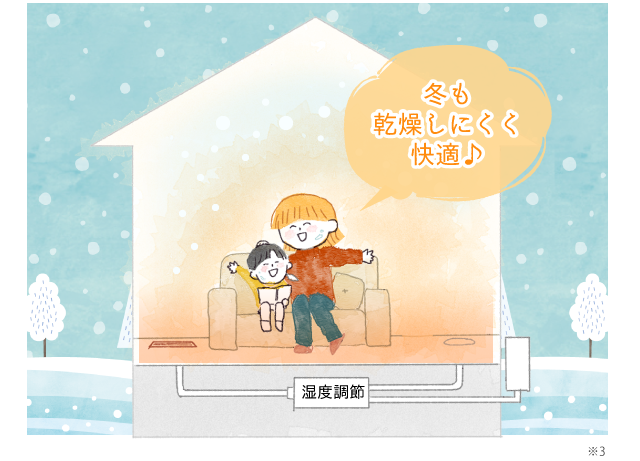 床下に湿度調整する換気システムを設置。24時間乾燥しにくく快適。