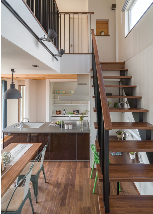 リビング階段で自然と人が集まる。リビング階段のある間取りにすれば、家のどこに行くにもリビングを通ることになり、足を向けやすくなります。デザイン階段を選べばリビングのおしゃれ度もグッとアップ!