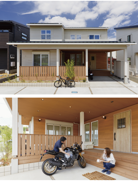 広いインナーガレージはバイクのメンテナンスやDIYにぴったり。雨に濡れずに荷物の積み下ろしもできるので、キャンプ用品置き場にも最適。アウトドア好きのパパにおすすめ!