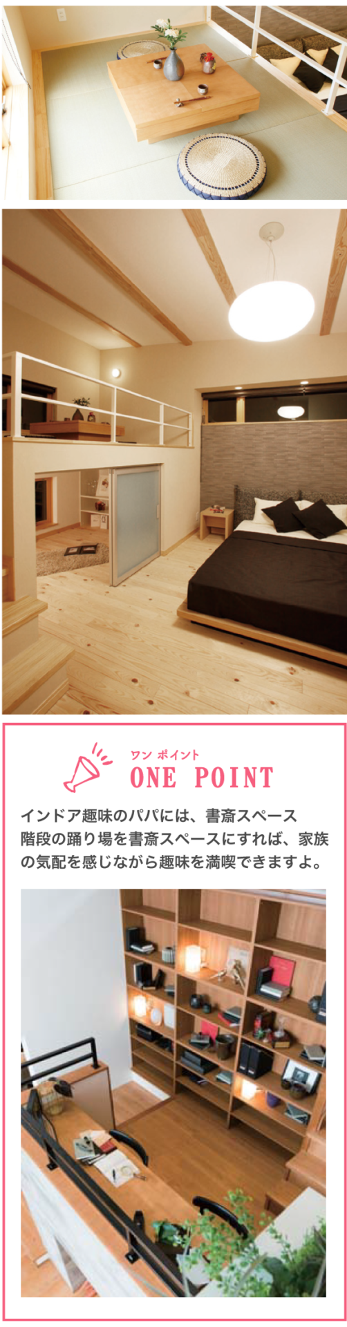 寝室の一角にステップフロアを設けて畳コーナーに。居酒屋気分でハイボール片手に夫婦の会話が弾みます♬たまには夫婦二人の時間もいいですよね。