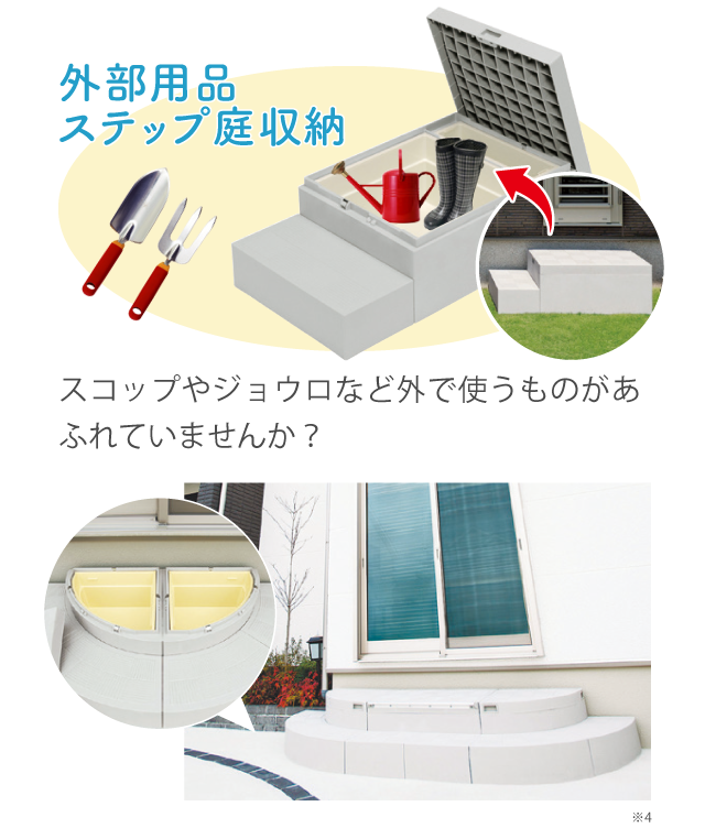 意外とかさばるガーデニング用品は勝手口のステップに収納。庭もすっきり。