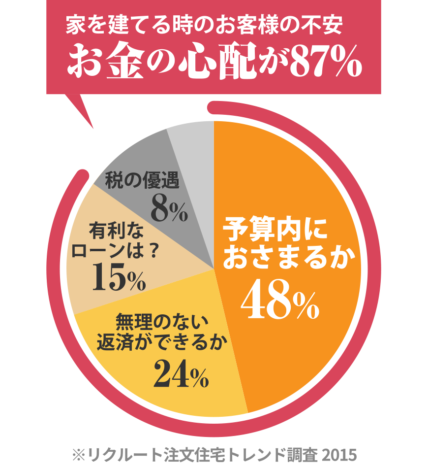 家を建てるとき、お客様が最も不安に思うことは、お金に関することです。