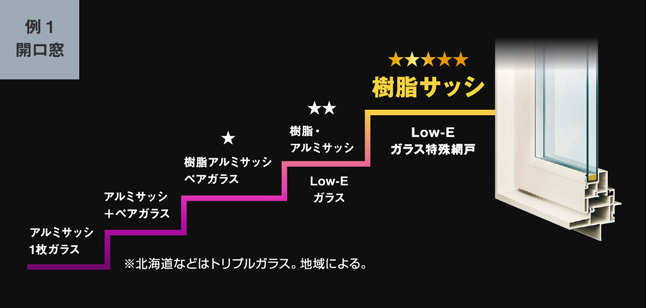 塩化ビニール樹脂で作られた、断熱性と気密性に優れた高級サッシです。厳しい寒さの地域で普及しており実は日本ではそこまで普及しておらず、10軒に1軒が樹脂サッシのお家です。スペーサーも樹脂であり断熱性があります。
