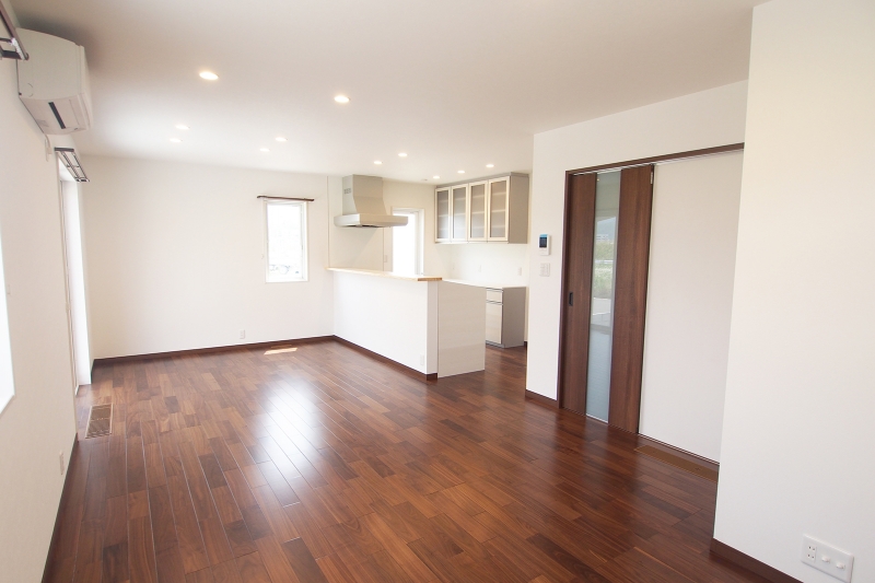 ウォールナット材の床と建具で、重厚感のある空間になりました。