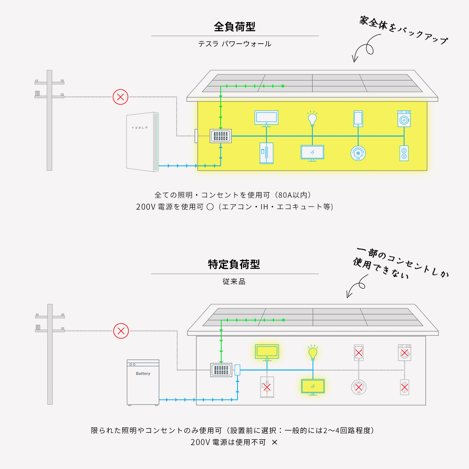 また、パワーウォールは「全負荷型」と呼ばれるタイプの蓄電池。